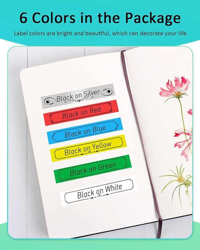 Anycolor 6 Pack Compatible with Brother P Touch 12mm 0.47 Inch Laminated TZ Label Maker Tape TZe TZ Label Tape for Brother Ptouch PT-D220 PT-D210 PT-H110 D410 D600, White/Silver/Red/Blue/Yellow/Green