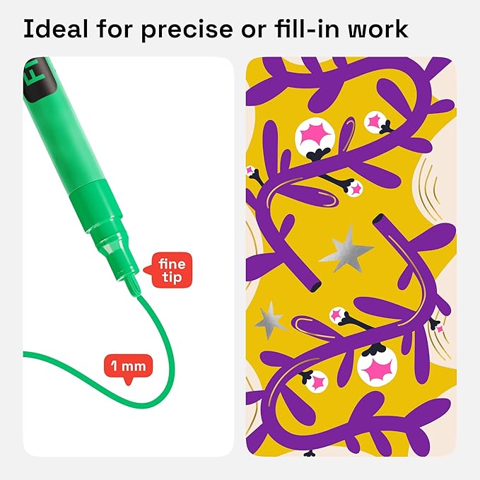 - Vivid Art: Each paint marker is equipped with vibrant oil paint. These paint pens paint markers are great for artists of all ages. Try blending colors or outline work with these oil paint markers!