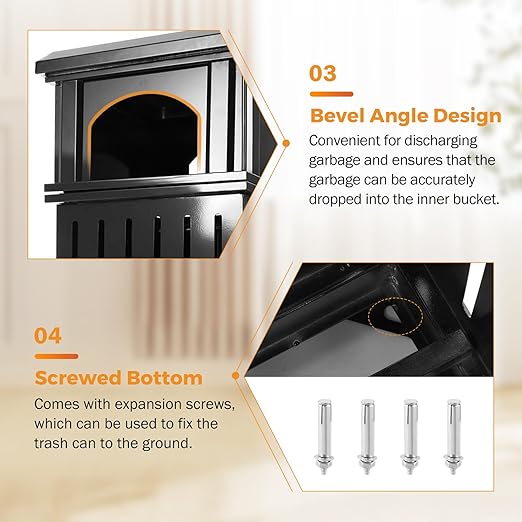 - WINDPROOF - BEAMNOVA commercial outdoor trash can is manufactured with commercial-grade metal with a powder-coat finish, BEAMNOVA heavy duty waste container performs well in both outdoor and indoor conditions. Comes with expansion screws, which can be used to fix the trash can to the ground.