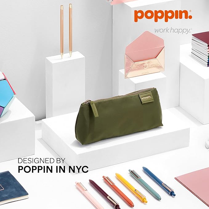 - Stylish Pens: Designed by Poppin in NYC, these popular, sleek and stylish retractable gel pens will brighten up your workspace and make writing more fun. This 4pk of Assorted Jewel Colors includes: gray, green, blush pink, and maroon, all with black ink.