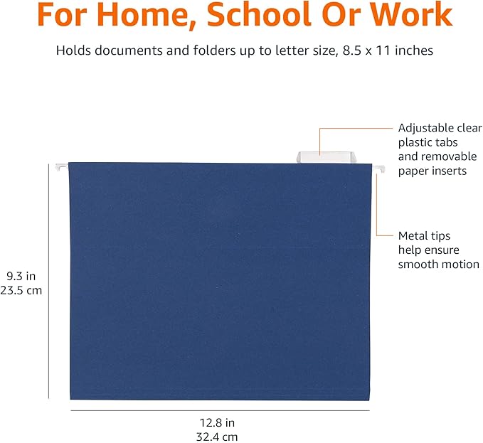 Amazon Basics Hanging File Folders, Sturdy, Letter Size, 25-Pack, Assorted Jewel-tone Colors
