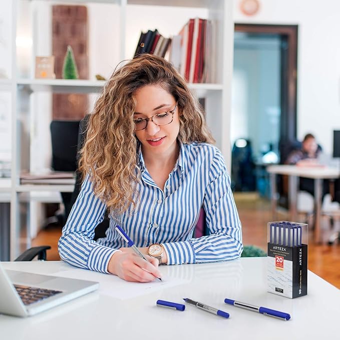 ARTEZA Rollerball Pens, Pack of 20, 0.5mm Blue Liquid Ink Pens for Bullet Journaling, Fine Point Rollerball, Office Supplies for Writing, Taking Notes & Sketching