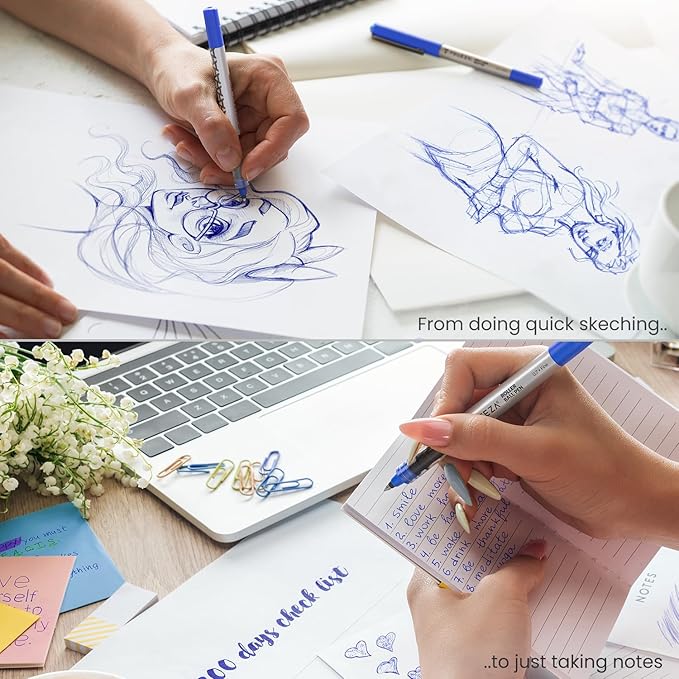 - Writes Smoothly: Get precise, clean lines of rich, full ink on every page with these liquid rollerball pens. These fine point blue gel pens flow free and write more smoothly than traditional pens.