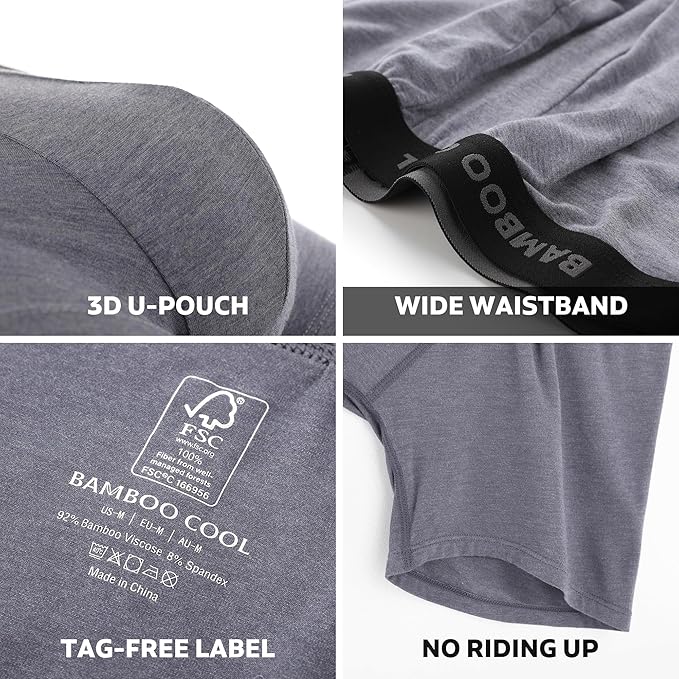 BAMBOO COOL Men's Ultra Breathable Underwear,No Riding Up Boxer Briefs with ComfortFlexible Waistband,Multipack