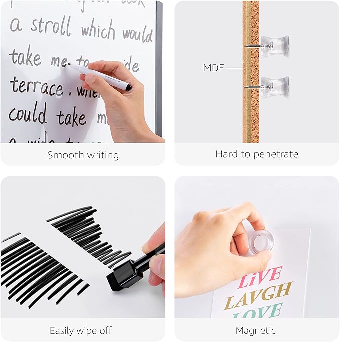 - Magnetic dry erase side offers white surface that can be written on with dry erase markers and wiped away easily