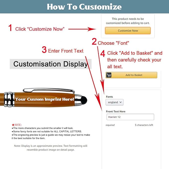 - FREE PERSONALIZATION You can have up to 40 characters (including spaces) on each line, up to 2 customized lines are free. we use laser engraving technology to engrave the text on the pen without fading. As long as you click the "Customize" option, you can easily customize it. Beautiful appearance, suitable for gift.