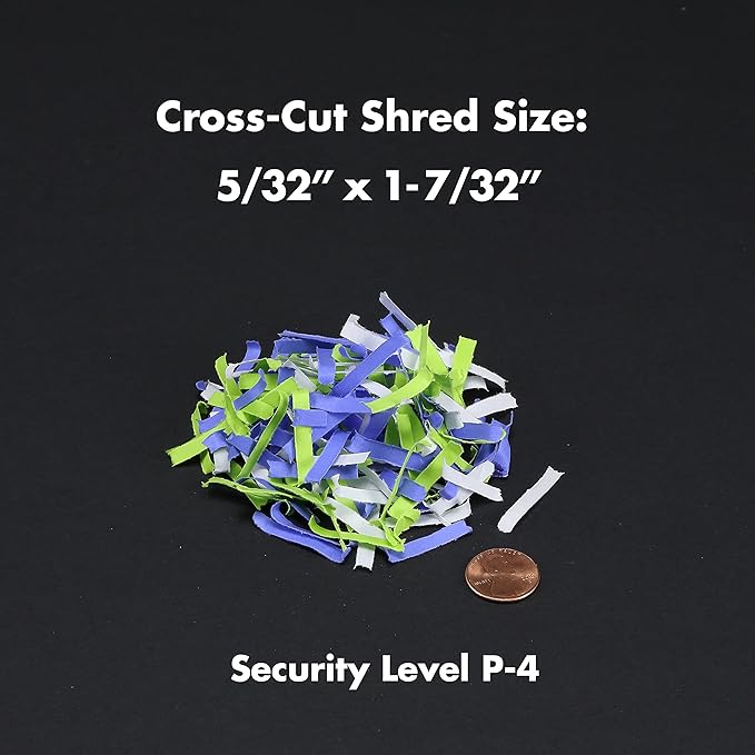- Destroys CDs, DVDs, credit cards and small paper clips into small pieces (5/32 by 1-7/32 inches), security level P-4