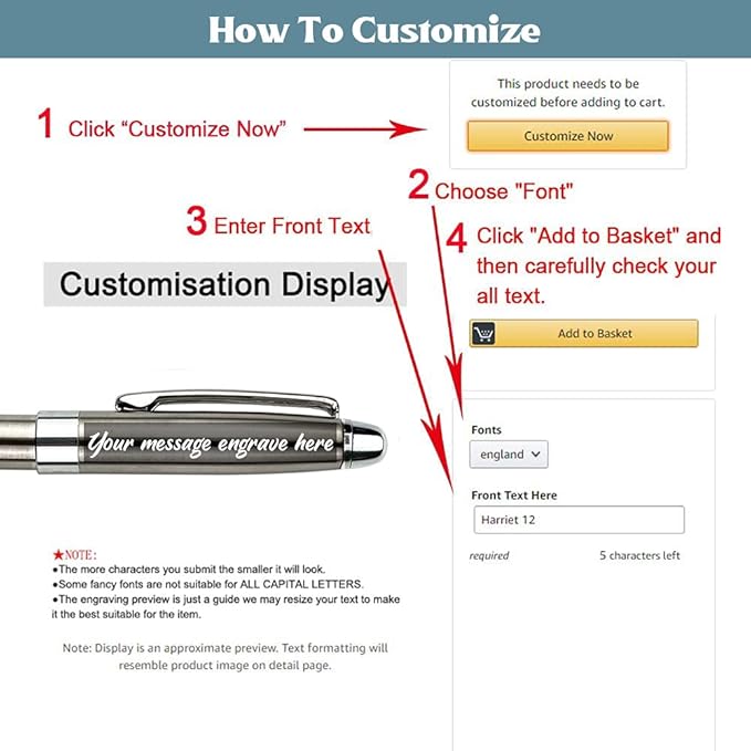 - FREE PERSONALIZATION You can have up to 50 characters (including spaces) on each line, up to 2 customized lines are free. we use laser engraving technology to engrave the text on the pen without fading. As long as you click the "Customize" option, you can easily customize it. Beautiful appearance, suitable for gift.