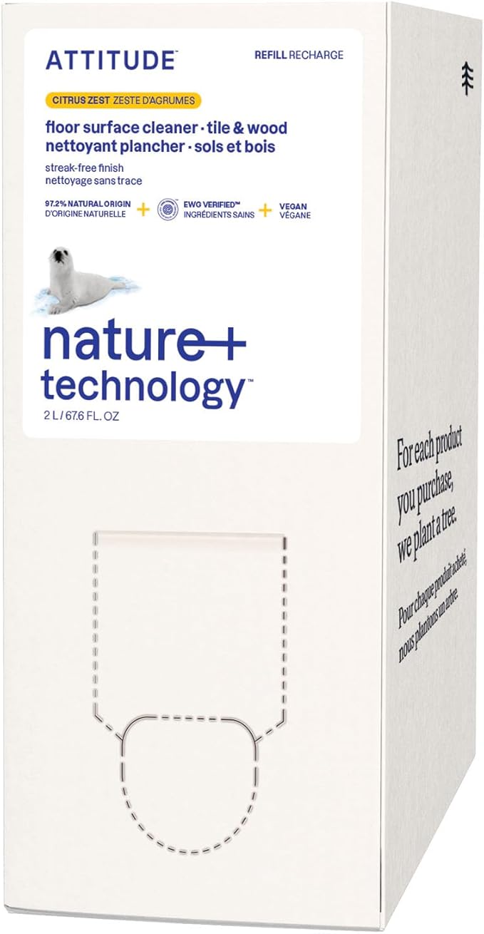 ATTITUDE Floor Cleaner Refill, EWG Verified, Streak-Free, Vegan & Plant-Based for Tile, Wood & Laminate Floors, Citrus Zest Scent, 67.6 Fl Oz