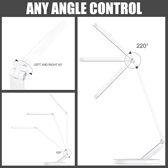 - ☀Durable and flexible durable full metal body and multi-angle adjustable head and arm. The base of this lamp can be tilted 100°, and the head can be tilted up 180° & swivel 220°.
