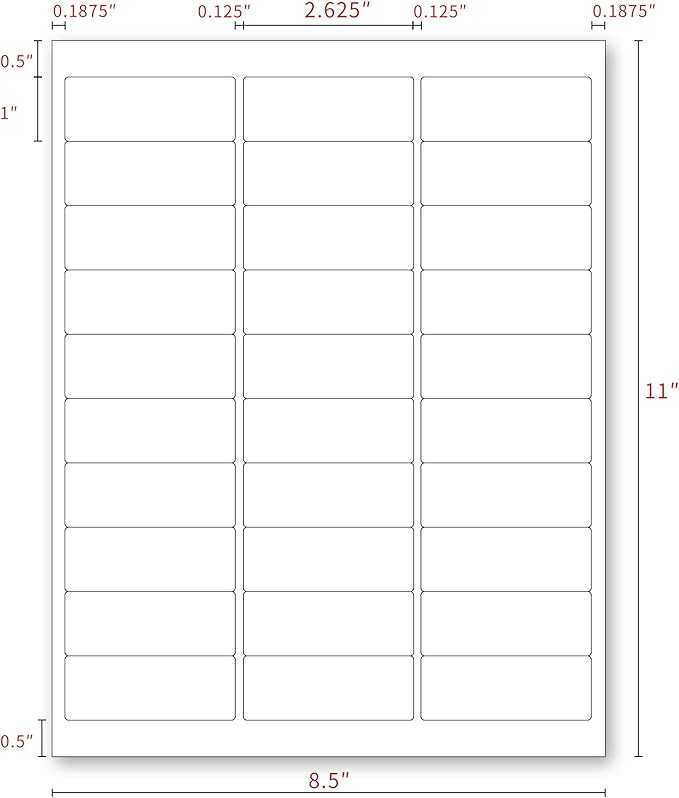 - Size : 1" x 2-5/8" | 30UP