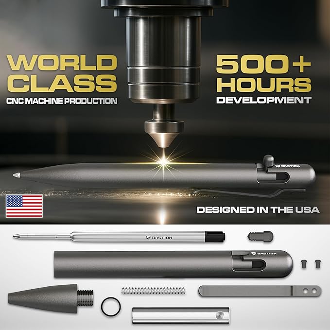 BASTION® Luxury Bolt Action Pen, Durable Professional Ballpoint Pen with Fine Tip, EDC Pen Ink Refillable Pen - Titanium Gray