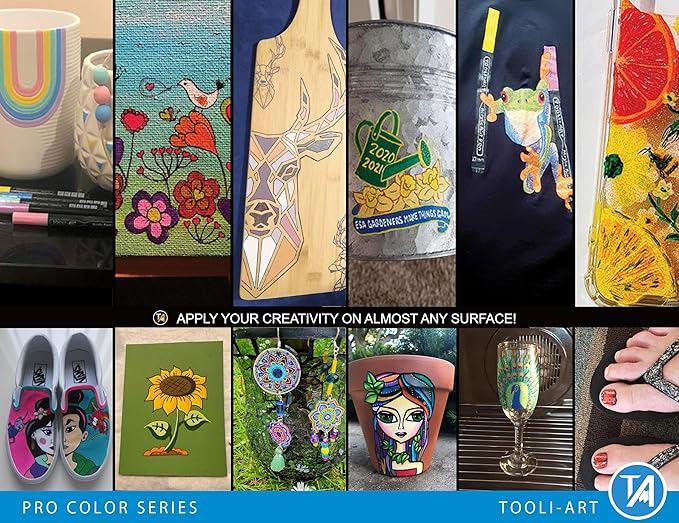 - ✔️MULTI SURFACE –The highly pigmented ink gives you nice opaque coverage on most surfaces such as stone, glass, wood, metal, fabric, porcelain, canvas, plastic, paper, cardboard, pottery, shoes, shirts, etc. The fade-resistant paint works great on dark and light surfaces. It dries quickly to prevent smudging.