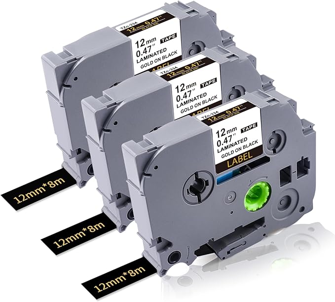 - Easy to Peel: Compatible with Brother Tz tape 12mm gold has split-back design, is easy to peel and convenient to use the 12mm Tz tape black.