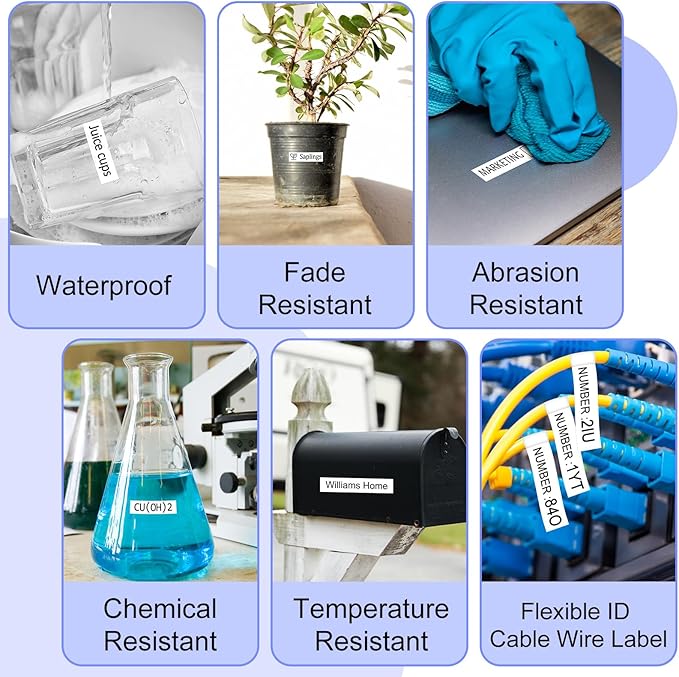 - Versatile Applications: Ideal for labeling cables, wires, PVC piping, electrical wiring, and audio/visual cables. Perfect for harsh environments due to its resistance to moisture, dirt, and extreme temperatures.