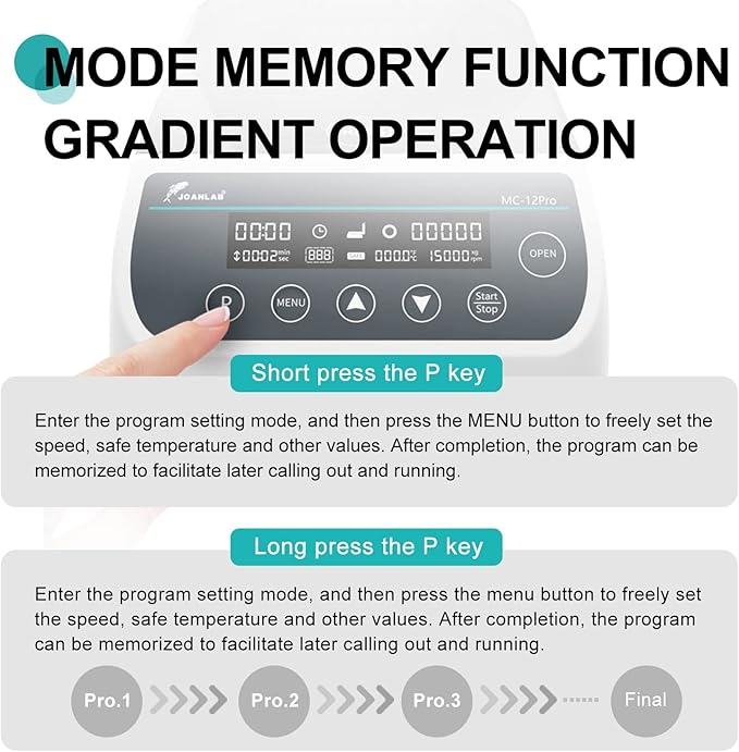 - JOANLAB MC serice is perfect benchtop microcentrifuge for your lab to do quick spin downs .With over temperature protection, when the temperature in the centrifugal chamber is too high during operation, the centrifuge machine will automatically shut down and open the lid, the buzzer will alarm for 5 seconds,and the SAFE flashes. Avoid damage to temperature-sensitive experimental samples due to excessive temperature to meet your diverse experimental needs.