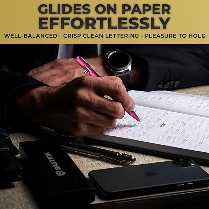 - PINK COLORED ALUMINUM LEAN DESIGN: The perfect versatile desk pen that will get you compliments. This sparkle colors balanced build Bastion bolt pen is the fancy cubicle supplies decor you will love. Impress others with the seamless body and will match your special stylish at work, office, school, or business.