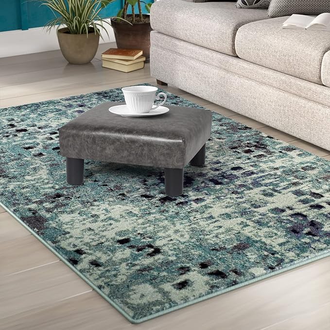 Joveco Small Footstool PU Leather Ottoman Square Footrest Stool Modern Padded Seat Chair for Living Room Bedroom Couch Dogs (Gray)