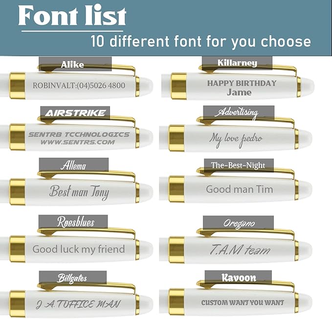 - FREE PERSONALIZATION You can have up to 50 characters (including spaces) on each line, up to 2 customized lines are free. we use laser engraving technology to engrave the text on the pen without fading. As long as you click the "Customize" option, you can easily customize it. Beautiful appearance, suitable for gift.