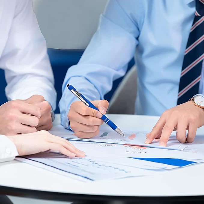 Ballpoint Pen with Stylus Tip, Soft Touch Click Metal Pen, 1.0mm Medium Point, Black Ink, 12 Count(Blue)