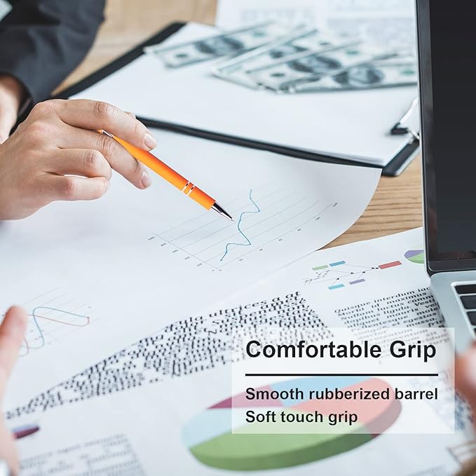 Ballpoint Pen with Stylus Tip, Soft Touch Click Metal Pen, 1.0mm Medium Point, Black Ink, 12 Count(Orange)