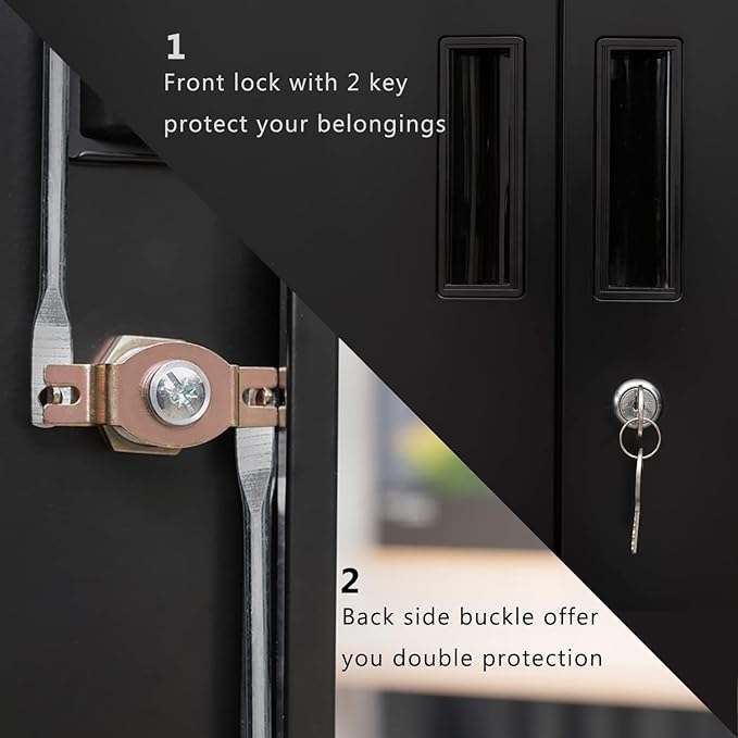 - Material and Design: Unlike other metal cabinet that are made of 3mm thick steel, our metal lockers are made of 5mm thick steel, providing you with security and durability. Additional top locker design gives you a different feeling