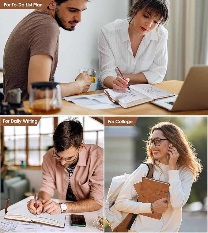 - 【Premium Thick Paper】- 5.9 X 8.4 inch journal notebook with 200 pages 100 gsm lined paper, thicker 30% than normal, this brown notebook is designed to avoid feathering and the paper is ink-proof, suit for most pens, but the wettest pen inks. Archival-quality pages made from acid-free paper-resists damage from light and air, the cream paper is easy on eyes.Let your creation more freedom on the wide ruled journal to write in.