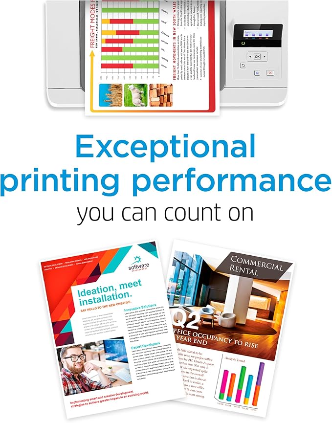 - PRINT PROFESSIONAL REPORTS AND FORMS – Produce sharp text and bold blacks with exceptional laser quality