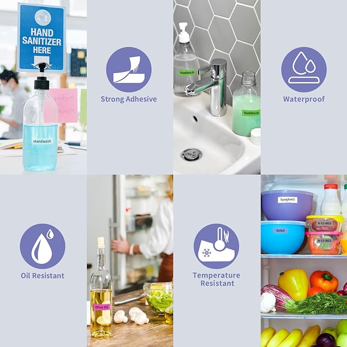 - 【Features】- Our compatible with brother p touch plastic label tape has <b> strong adhesion, temperature, water, oil, chemical and abrasion resistance. </b>The compatible with Brother p touch m tape can be applied to flat surfaces of glass, plastic, metal and wood without peeling off for a long time and the contents remain clear for a long time.