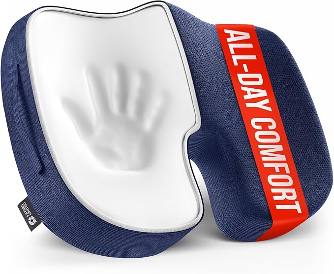 5 STARS UNITED Seat Cushion for Tailbone Pain Relief – Memory Foam Lifting Pillow for Coccyx, Hip, Hemorrhoid, Sciatica & Post-Surgery Recovery – Wheelchair, Car, Desk, Gaming & Office Chairs, D Blue