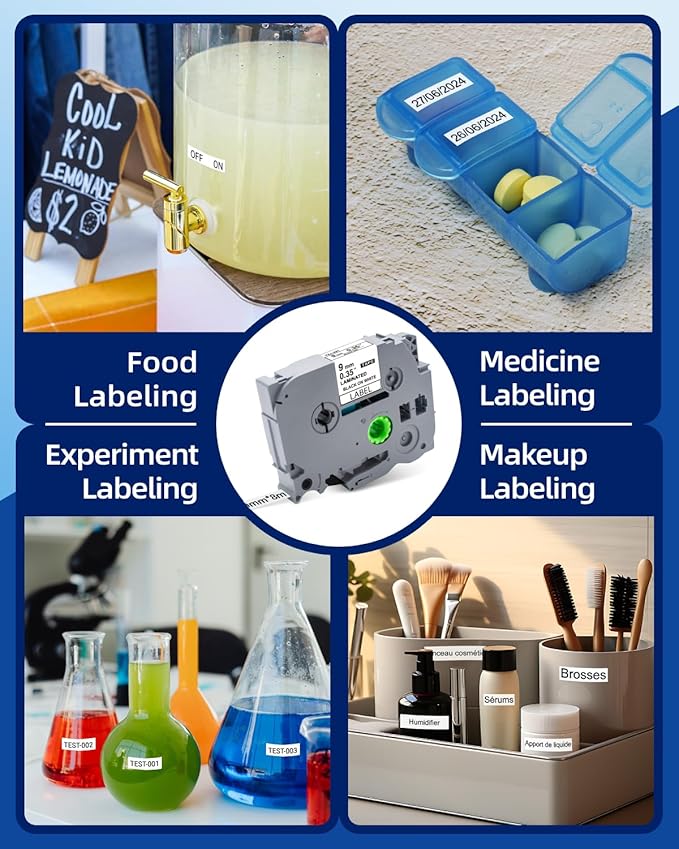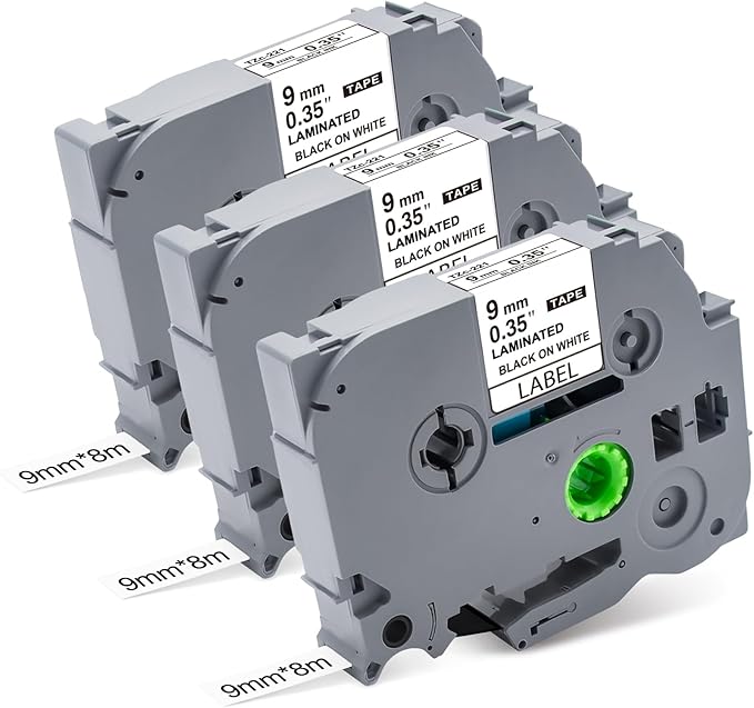- Compatible for Brother Tz tape 9mm 0.35 laminated white : For indoor & outdoor label maker tape 9mm 3/8 is self-adhesive. Commonly used in homes, offices, schools, restaurants, factories, warehouses, shops, banks, hospitals, governments, hotels, laboratories, farms, repair shops and other scenes to distinguish items, mark dates and prices, operation prompts, mark personal items, etc.