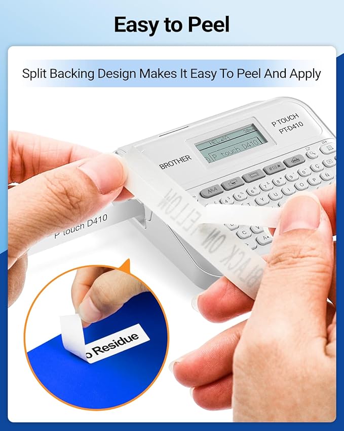 - TZe-221 Label Maker Tape 9mm 0.35 for Brother Label Makers TZe : Ptouch PT-H100, PT-H110, PT-D210, PT-D220, PT-D200, PT-P300BT, PT-D400, PT-D410, PT-D450, PT-D460BT, PT-D600, PT-D610BT, PT-P700, PT-P710BT, PT-P750W, PT-1090, PT-1180, PT-1280, PT-1290, PT-1230PC, PT-1750, PT-1800, PT-1880, PT-1890, PT-1900, PT-1910, PT-2700, PT-2730VP, PT-H300,PT-H500LI,PT-E500, etc. (Note : TZe221 tape is NOT work for Brother M printers including PT45M, PT65, PT70BM, PT80, PT85, PT90, PTM95, pt10, pt15, pt20, pt150.) Compatible with brother label maker tape 9mm .35 white laminated, for brother p-touch label tape 9mm .35”, for brother p touch label tape 9mm