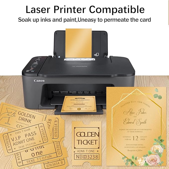 - Printer Friendly: Sturdy and versatile, our gold shimmer card stock paper is compatible with laser printers and some types of inkjet; Please check the maximum thickness specification of your printer before printing