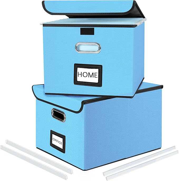 Huolewa Decorative File Organizer Document Storage Boxes with Lids, Linen Hanging Filing Storage Boxes, Decorative Home/Office Filing System for File and Folders Storage
