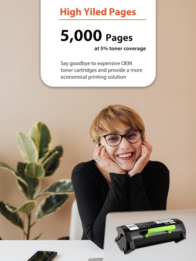 - High Page Yiled: Up to 5,000 pages per compatible 501H toner cartridge at 5% coverage black on Letter/A4