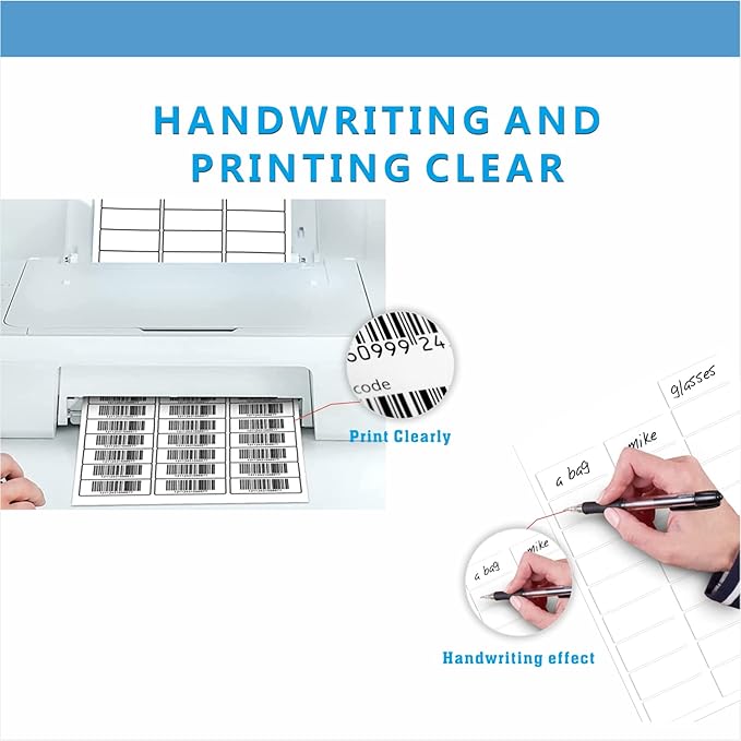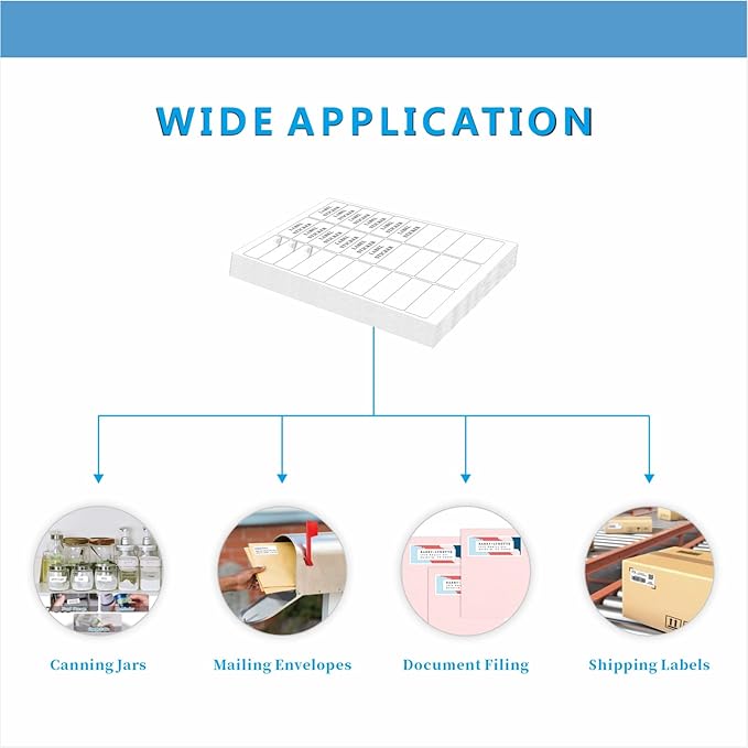 - 【STANDARD SHEET SIZE】-- Blank white address labels sheet size: 8.5" x 11", per sheet comes with 30 labels that size: 1 x 2-5/8" (2.5 by 6.6cm), 30 sheets total 900 labels give more labels to organizing your item. Labels are big enough, you will get a good amount of space to work with and to be seen easily after printing and writing