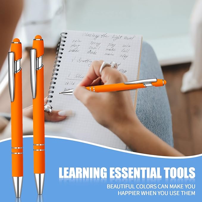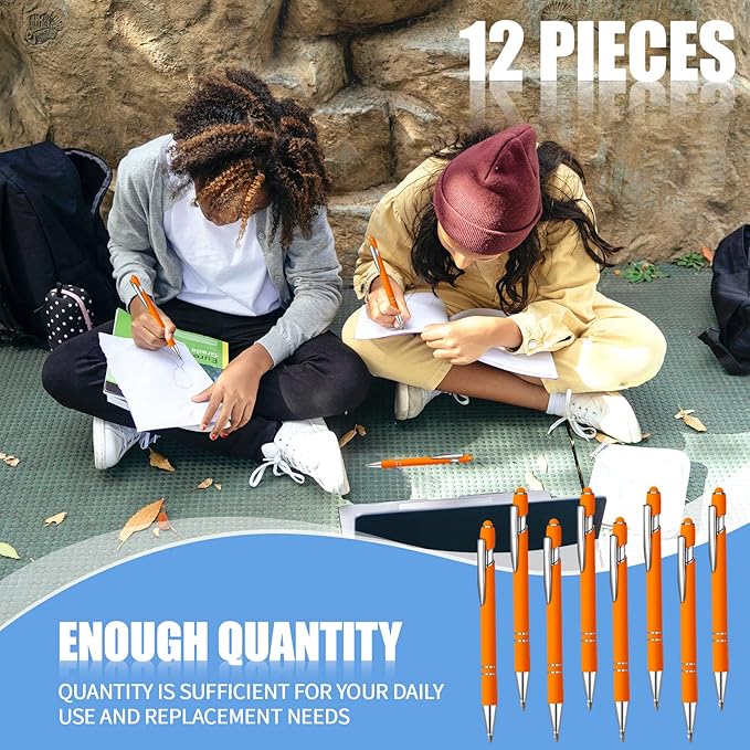 12 Pcs Blue Ink Ballpoint Pen with Stylus Tip, 1.0 mm Metal Pen Stylus Pen for Touch Screens, 2 in 1 Thank You Pen Gift for Friends, Colleagues, Coworker, Office, Family (Orange)