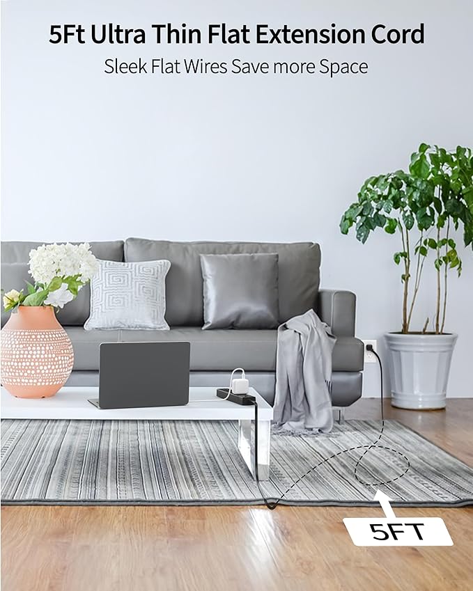 - 【Stay Organized】 - Our 5 ft flat cable keeps cords hidden and allows for easy placement of your electrical products. No more unsightly cords or awkward furniture arrangements.