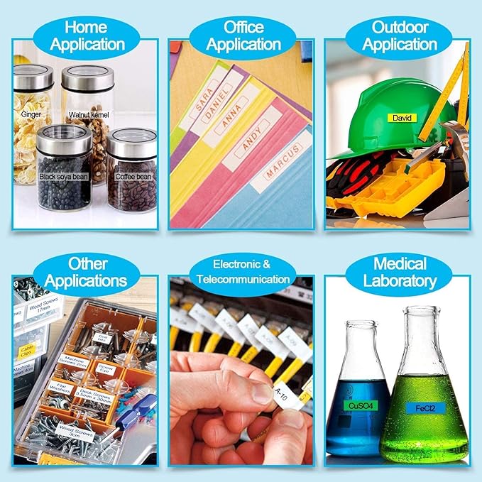 - Applications: Absonic 9mm Xr-9we2s Label Tape uesd for indoor and outdoor. Widely used in offices, homes, supermarkets, laboratories, libraries, warehouses, hotels, and so on