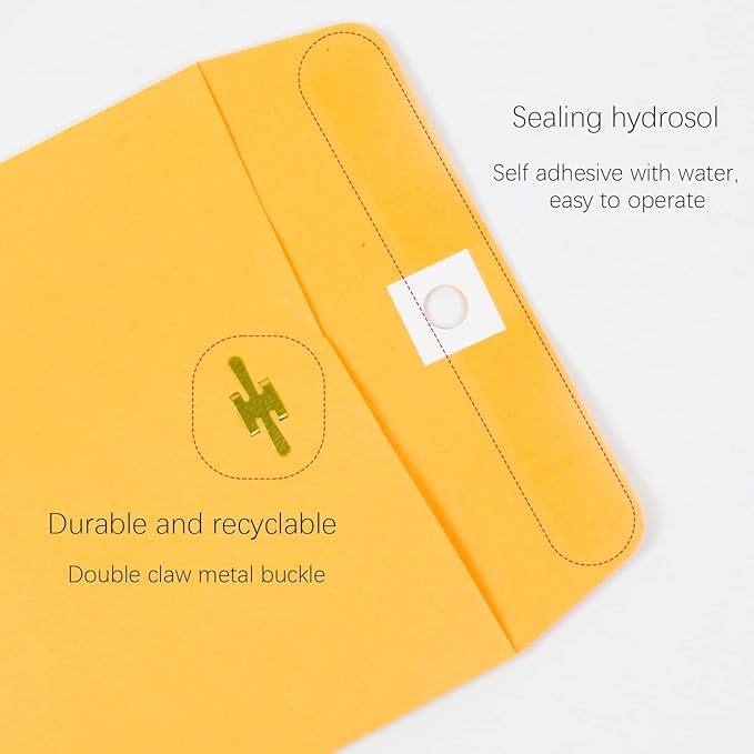- Two-layer seal: 2-prong metal buckle and reinforced eyelet seal, recyclable, inner rubber seal with water-soluble glue, double-layer seal provides security for your items and documents