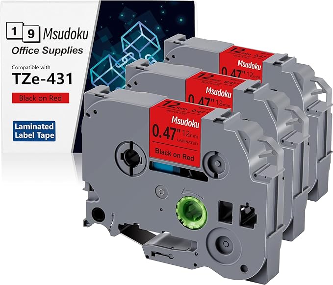 - These compatible for brother label maker tape 12mm 0.47 TZe-431 TZe431 have strong adhesive and no sticky residue when you remove it. The split back design of ptouch label tape 12mm red tape is very easy to peel off
