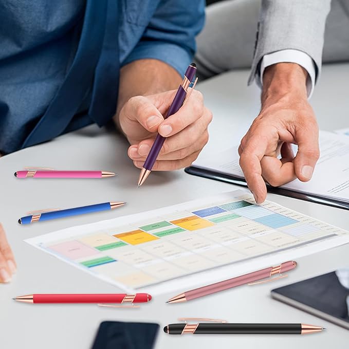 12 PCS 2 in 1 Stylus Ballpoint Pen with Stylus Tip, 1.0 mm Black Ink Metal Pen Stylus Pen for Touch Screens (Rose glod & 6 Colors)