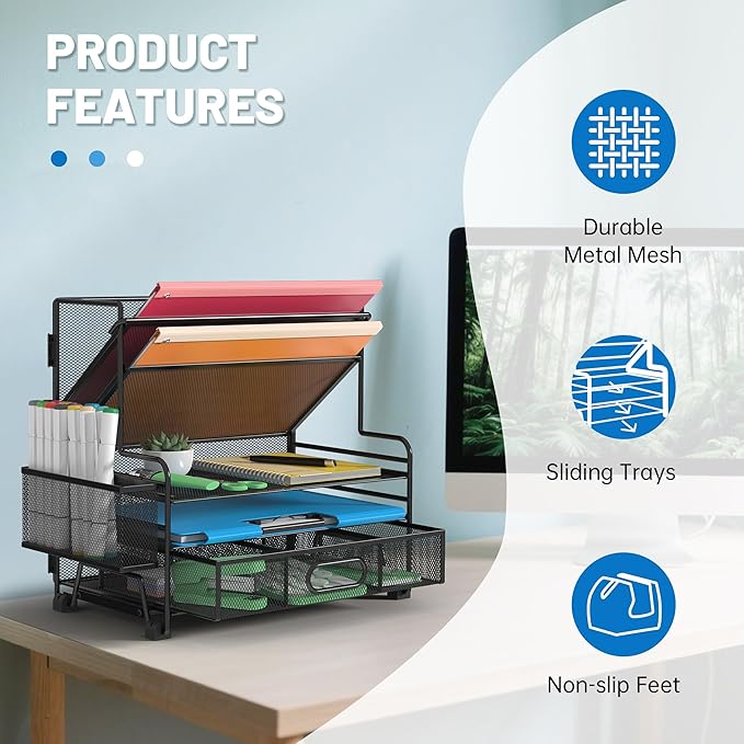 - Space-Saving Design: The 5-tier structure maximizes vertical storage, keeping your desk tidy and organized without taking up excessive space