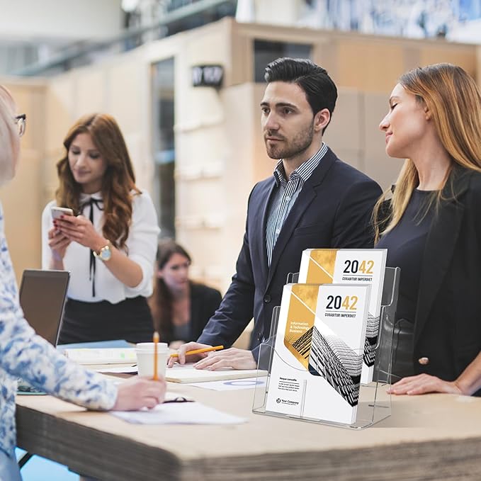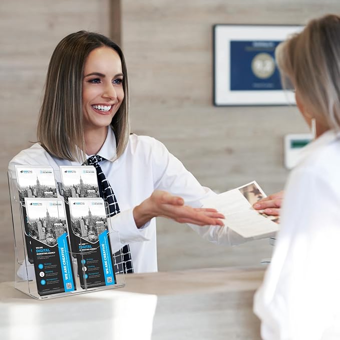 - 【Sturdy & Security Acrylic Materials】business card holder brochure display stand is made of smooth, excellent durability acrylic, non-toxic, no smell, reusable, and has a long-lasting service life. brochure and business card holder magazine holder Easy clean with mild soap and water