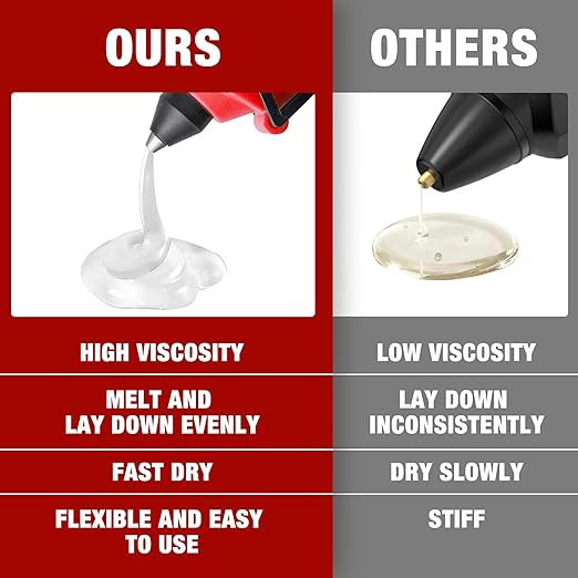 - Extra-strong Bond: With a higher EVA content compared to traditional glue sticks, our product delivers an extra-strong bond. It ensures that your projects stay securely in place, whether you're working with paper, fabric, wood, or other materials.With their superior adhesive properties, these glue sticks create a strong and reliable bond on various surfaces, including paper, fabric, wood, plastic, and more. Your projects will stay intact