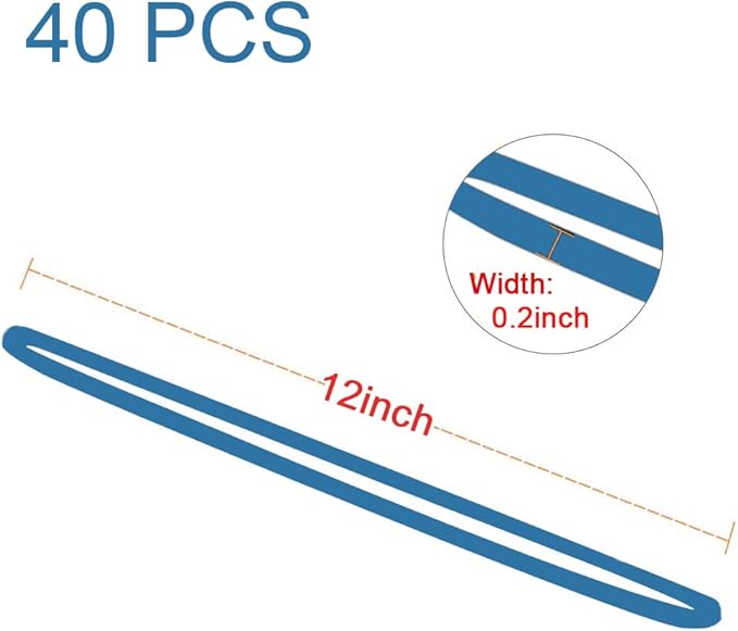 AMUU Rubber Bands Large Flat Fold Length 12inch 40 Pieces Fits 8-33 Gallon Trash Cans Blue Heavy Duty Elastic Rubber Bands for File Folders Office Home Supplies