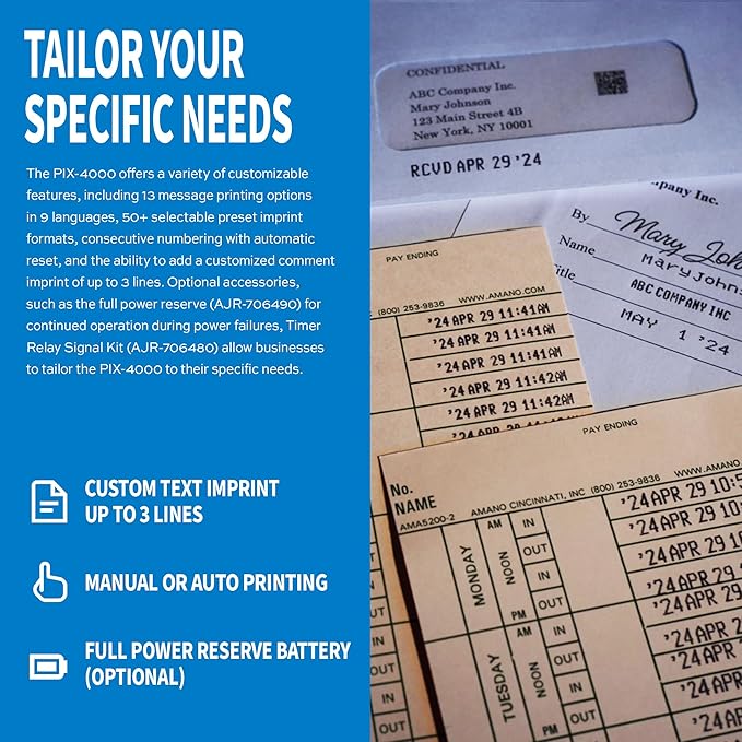 AMANO Heavy-Duty economical, and Fully Automatic Electronic time and Date Stamping Machine (PIX-4000)