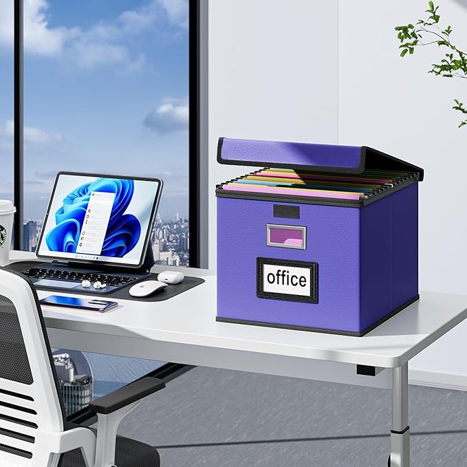 - Unique Functional Design - This file boxes both sides are equipped with practical PVP slide rails, which can not only prevent the two sides of the file storage box from loosening, but also facilitate the sliding of the file folder, which is very suitable for hanging file folders. The metal handles on both sides allow us to easily move the storage box, and the label slot on one side facilitates classification. Functional features and a beautiful design create the best filing box organizer.