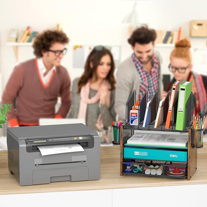 - ✅【Multifunctional Desk Organizer】Our desk file organizer contains 5 vertical classifiers, 1 sliding drawer with 3 compartments and 2 pen holders. You can DIY this organizer, and it can be used in a variety of ways to meet different storage needs, keep your desk organized.