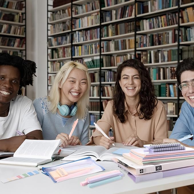 - Back to School Essentials: you will receive 12 pieces of pastel highlighters, 12 pieces of black ink writing pens in 6 different colors of pen shells, 12 pieces of pencils, 2 pieces of document bags, 1 piece of pencil pouch, 3 pieces of A5 notebooks, 3 pieces of B5 notebooks, 3 pieces of sticky notes, 2 pads of spiral index cards, 2 erasers and 2 file folders, almost everything you need for back to school